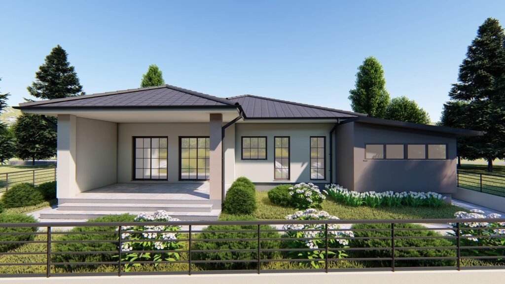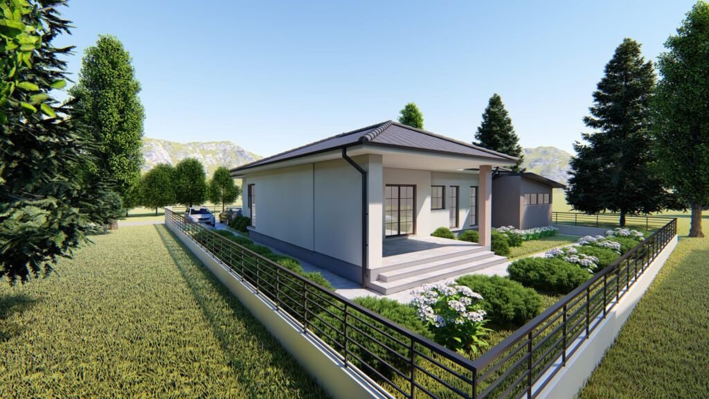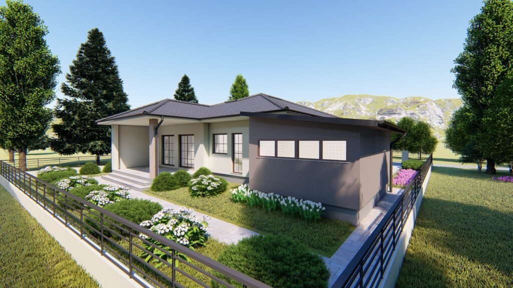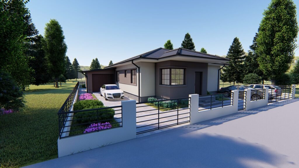 This project delivers a modern architectural solution for a single-story family house, with a clearly defined layout and a strong emphasis on orientation, daylight access, and spatial flow.