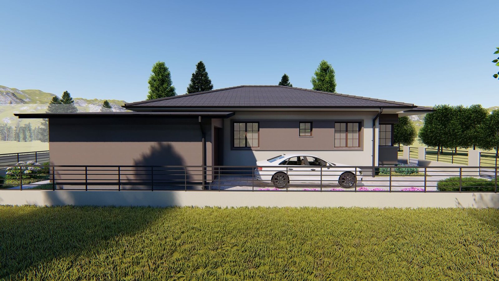 This project delivers a modern architectural solution for a single-story family house, with a clearly defined layout and a strong emphasis on orientation, daylight access, and spatial flow.